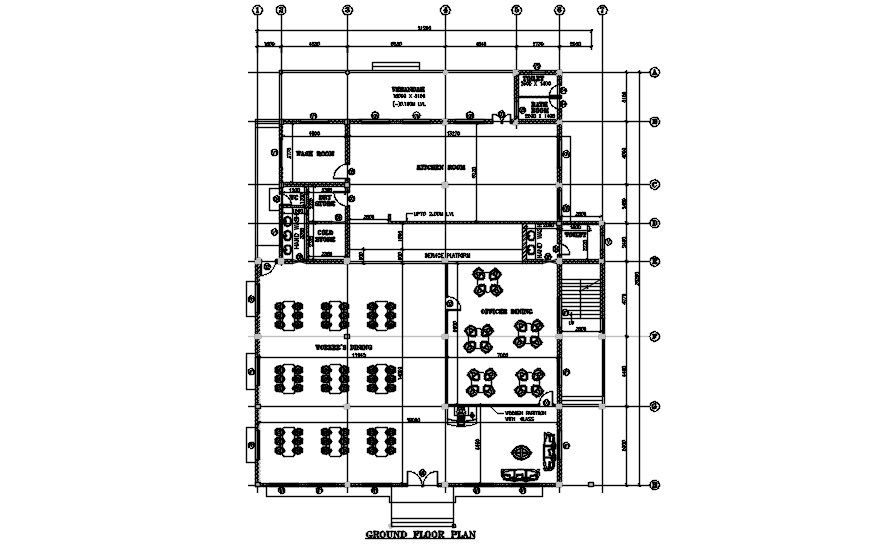 Hotel floor plan detail drawing shows in this AutoCAD drawing file. dining table details, services, and staircase detail is given in this file with dimensions and material specifications in this file. this can be used by architects and engineers. Download this 2d AutoCAD drawing file.
