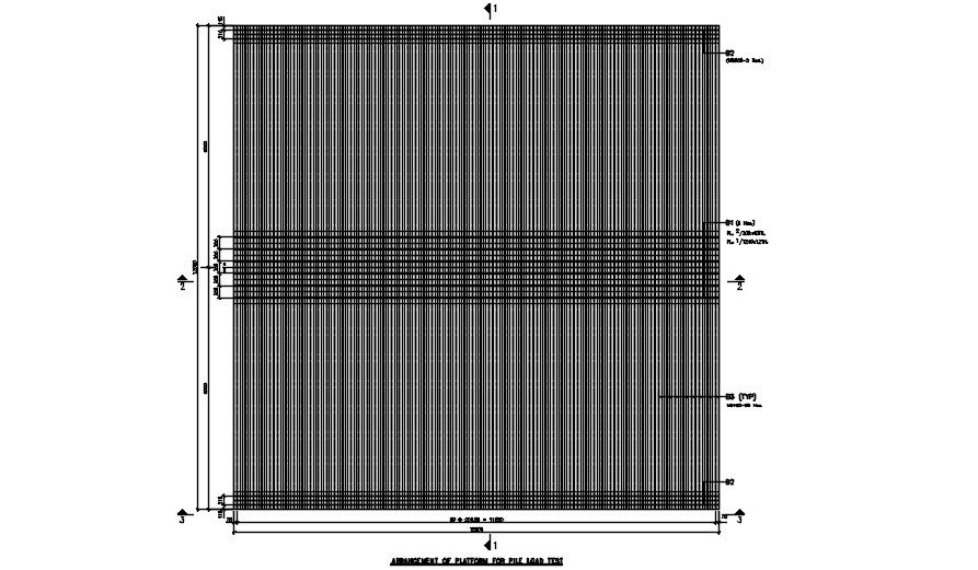 AutoCAD Plan on Arrangement of platform for Pile Load Test. Download the AutoCAD DWG file.
