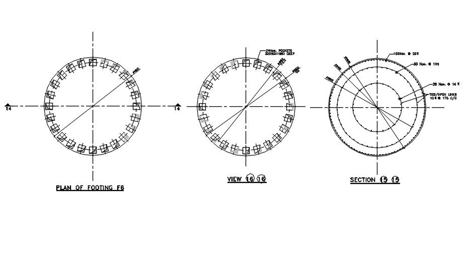Circular footing detail drawing provided in this AutoCAD file. Download this 2d AutoCAD drawing file.