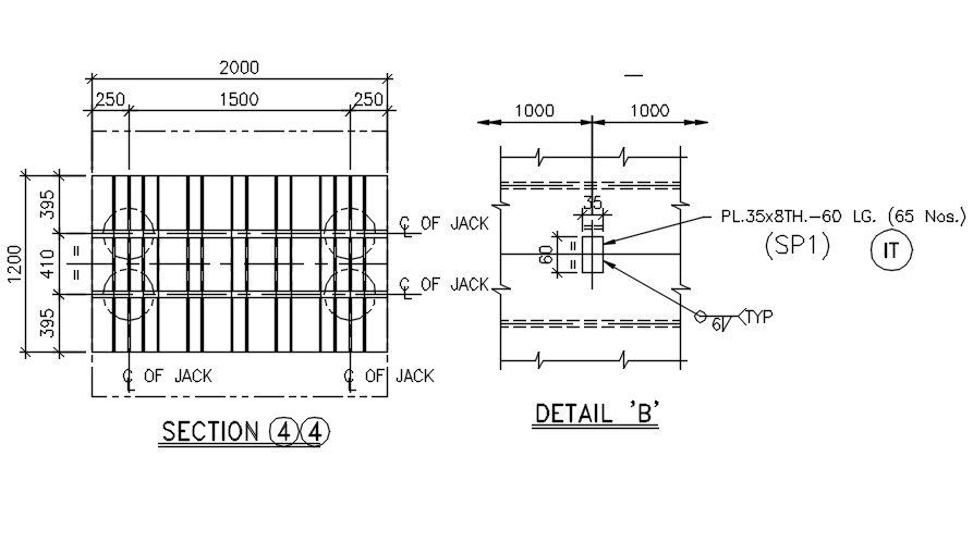 AutoCAD section plan of the MRTS (Mass Rapid Transit System) I section. The cross sectional details of the structural elements are also mentioned. Lifting jack arrangement and pile section are detailed. Download the AutoCAd 2D file for related terms.