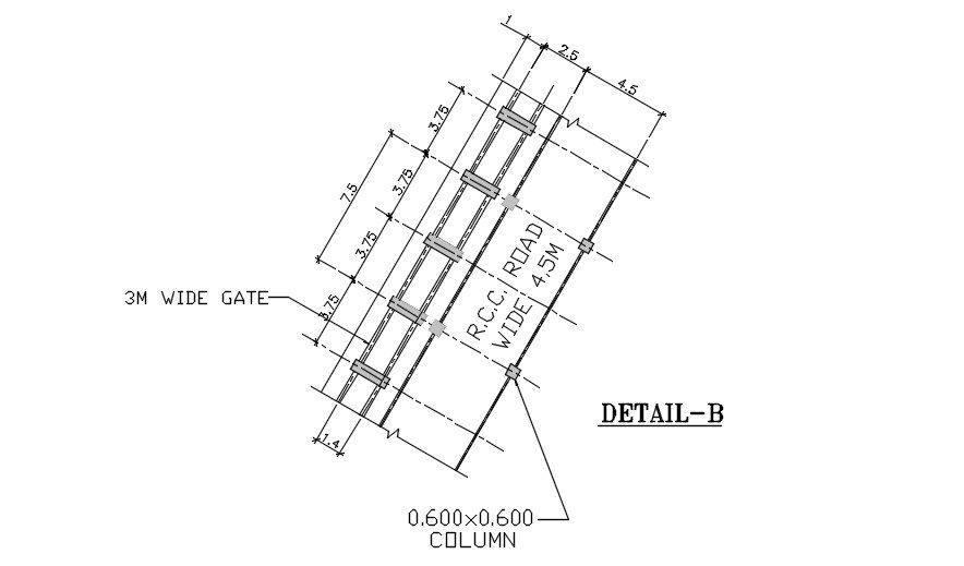 R.c.c 4.5 m wide road stated in this AutoCAD drawing file. Download this 2d AutoCAD drawing file.