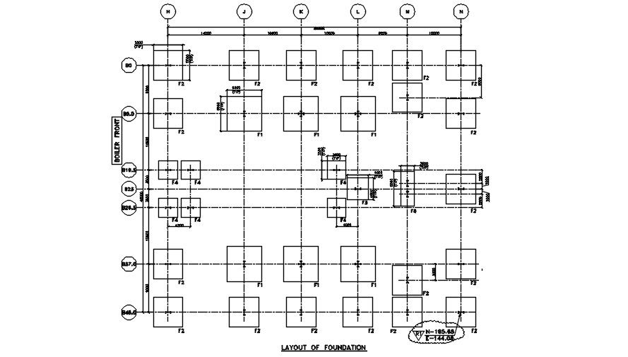 The layout of the foundation plan specified in this AutoCAD drawing file. this file consists of the boiler front of this file column mentioned with the name like f1 f2 and centerline drawing plan presented. also dimensions and section line given in it. Download this 2d AutoCAD drawing file.