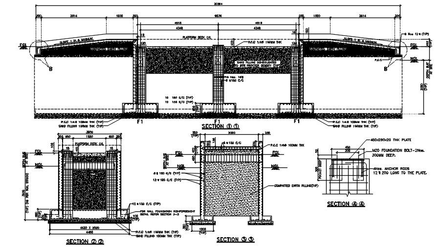 Bridge section details provided in this AutoCAD file. this file consists of column detail of the bridge section with dimensions and material specification detail is given in this file. this can be used by architects and engineers. Download this 2d AutoCAD drawing file.