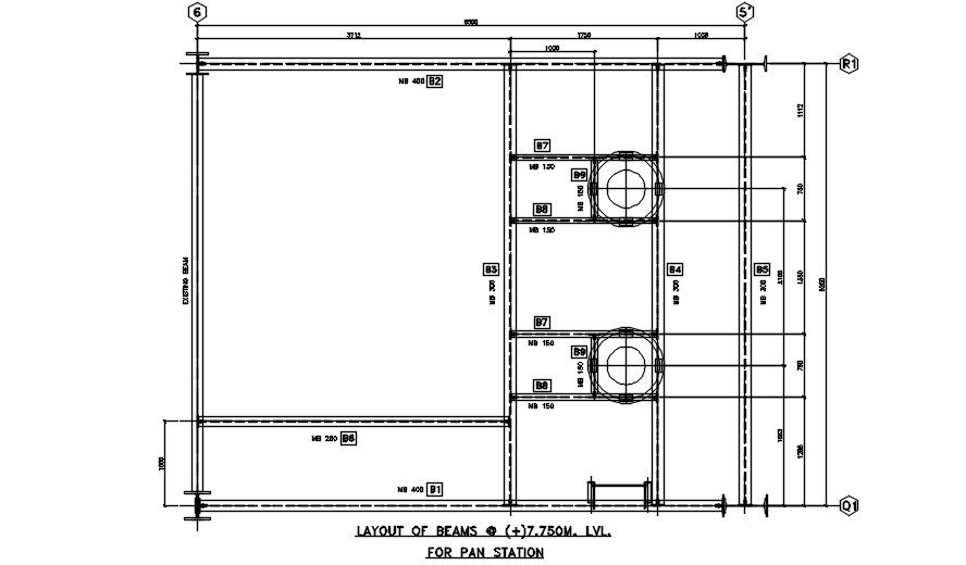 The layout of beams for the pan station provided in this AutoCAD drawing file.Download this 2d AutoCAD drawing file.