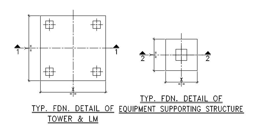 Typical foundation detail of Equipment supporting structure. Download the AutoCAD 2D file.