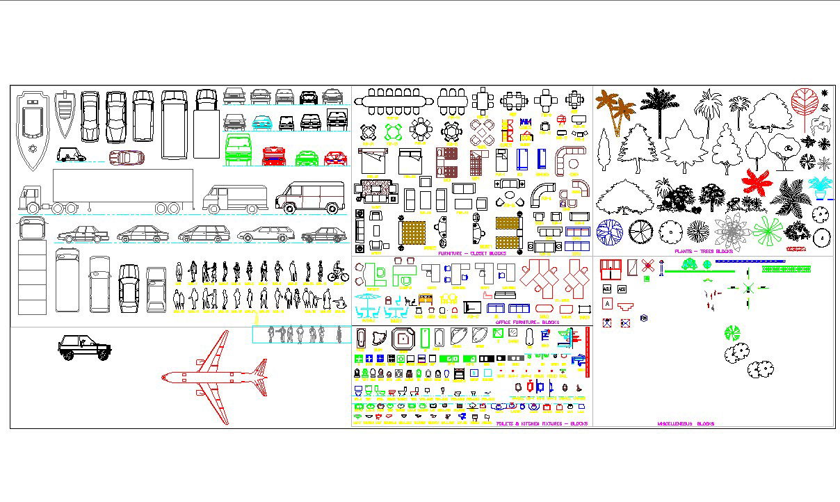 Download free Autocad 2d blocks of furniture, vhicle, human, trees, Plane,Sanitary, and presentations blocks of architecture and interiors.