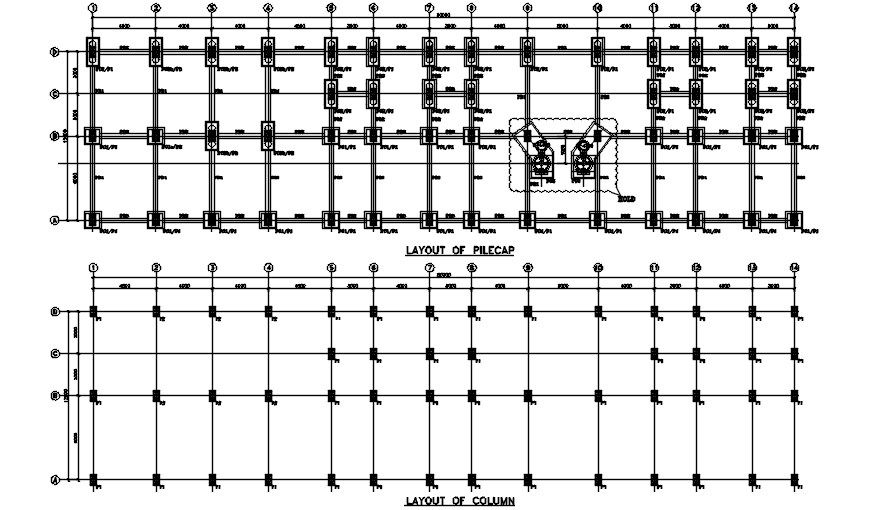 The layout of the pile cap detail given in this AutoCAD drawing file. a column layout and pile cap detail are given in this AutoCAD drawing file with dimensions detail. this can be used by architects and interior design. Download this 2d AutoCAD drawing file.