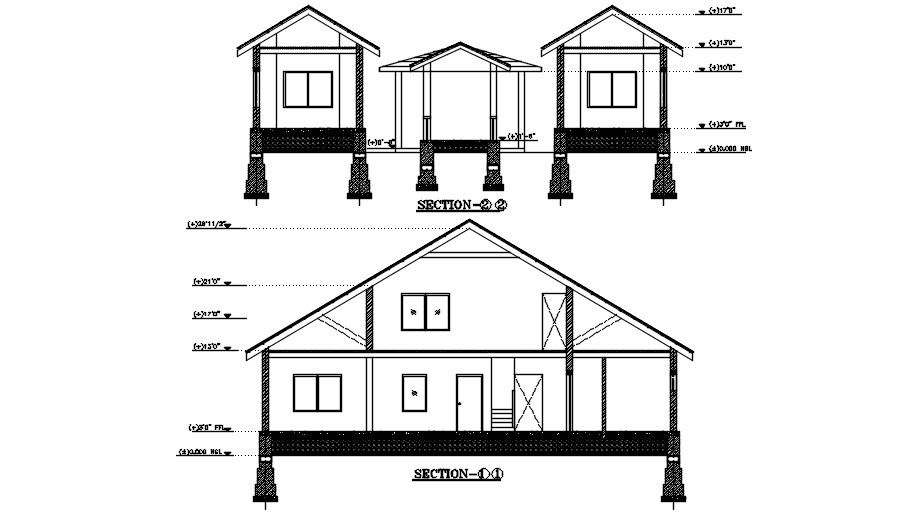 An elevation and sections detail of residential building is given in this Autocad DWG drawing file. Download the AutoCAD drawing file.