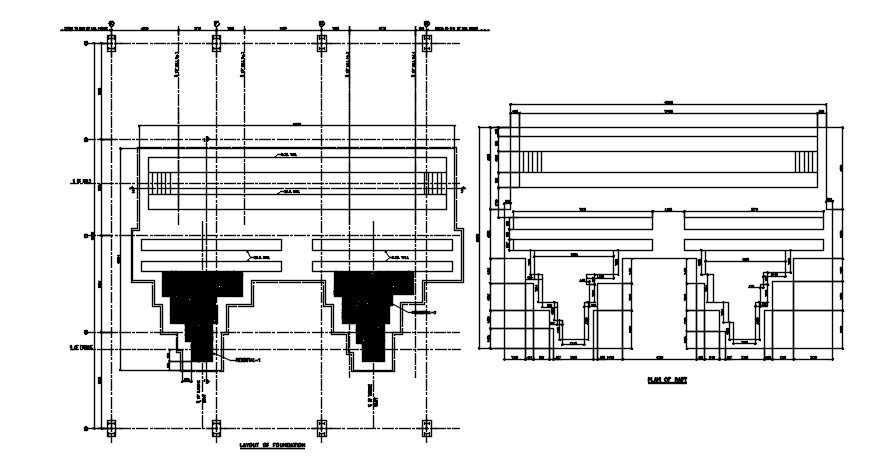Layout of foundation and raft plans is given in this Autocad 2D DWG drawing file. Download the 2D Autocad DWG drawing file.
