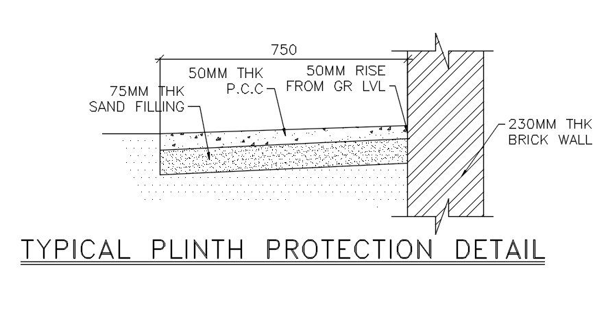 Typical plinth protection details are given in this Autocad 2D DWG drawing file. Download the Autocad DWG drawing file.