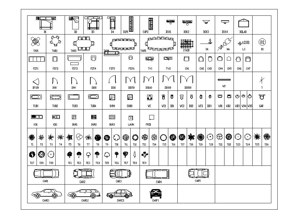 Autocad drafting blocks inlcude furniture, vhichle, doors, sanitery, trees and other usable cad blocks of drafting.