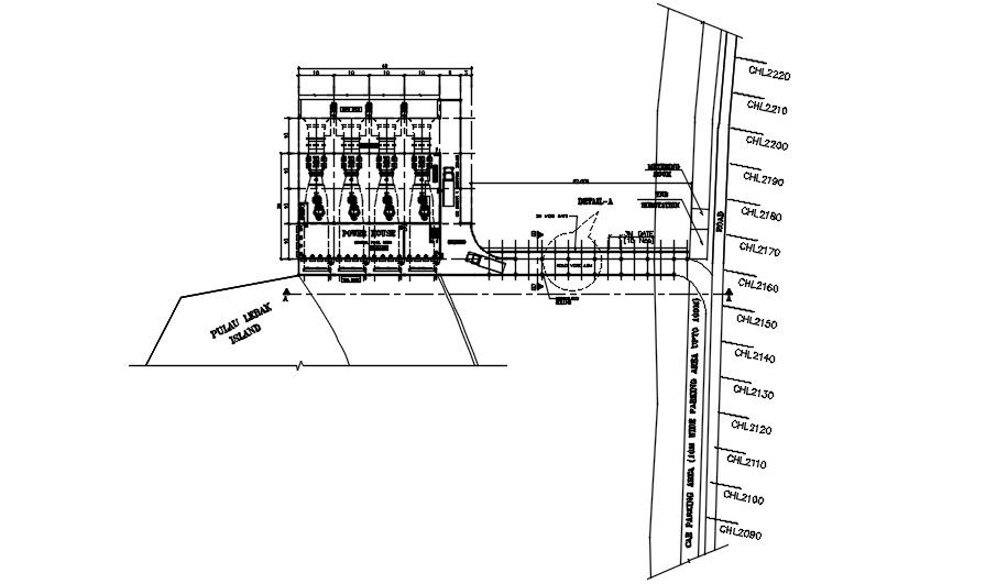 Plan of bridge and sluice gate has given in the AutoCAD 2D DWG drawing file. Columns are mentioned with size of 0.6x0.6m each. 3m wide gate is provided. Meeting hall, TNB substation and control panel room are mentioned in the power house. Other details are given clearly in the drawing model. Thank you for downloading the AutoCAD file and other CAD program files from our website.