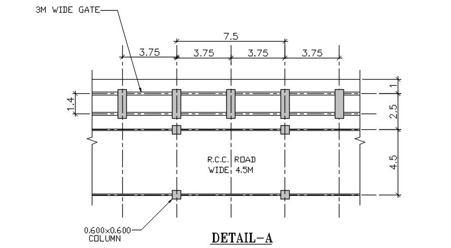 A plan detail of sluice gate is given in this AutoCAD 2D DWG drawing file. RCC road wide is 4.5m. Columns are mentioned with size of 0.6x0.6m each. Each gate size is 3m wide. Download the AutoCAD file. Thank you for downloading the AutoCAD file and other CAD program files from our website. .