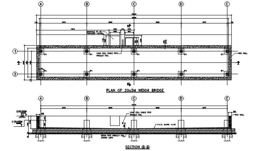 20x3m weighbridge plan designed for industrial and civil engineering use. It features accurate structural layout details suitable for site planning, load distribution, and construction documentation. Ideal for engineers and designers working on transport infrastructure and heavy vehicle weighing systems, this drawing ensures design precision and clarity.