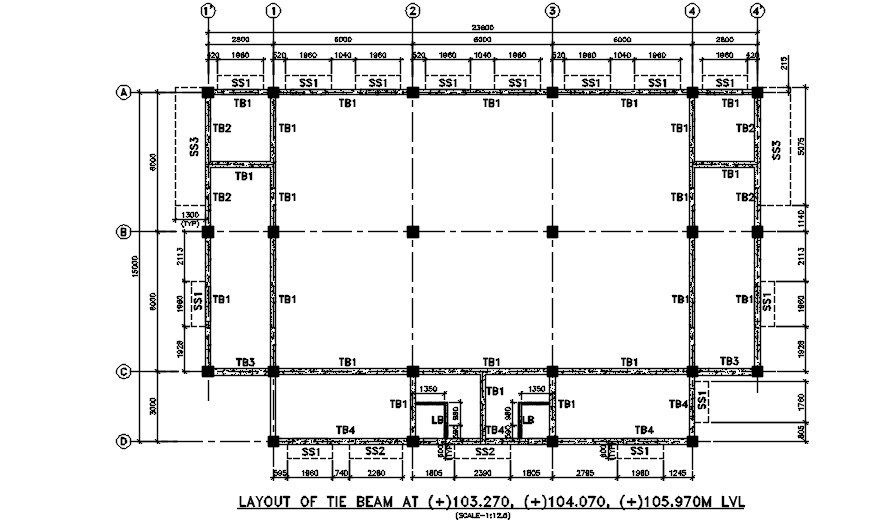Download the 2D AutoCAD DWG drawing file for tie beam layout and details. Perfect for engineers and architects. Free DWG file available for download.