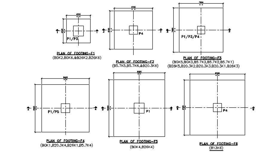 Plan of footing of boiler tank is given in this 2D AutoCAD DWG drawing file. There are six types of footing details are given in this drawing file. Each footing sizes are mentioned. Download the autocad DWG drawing file. Thank you for downloading the AutoCAD drawing file and other CAD program files from our website.
