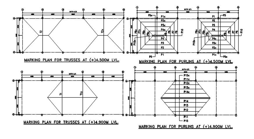 Marking pl an for truss and marking plan for purlins are given in this 2D AutoCAD DWG drawing file.Download the Autocad DWG drawing file.