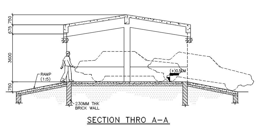 Section details of car parking are given in this 2D AutoCAD DWG drawing file. Thickness of brick wall is 230mm. Total height of car shed is 5.7m. 1:5 slope is provided for the ramp. Thank you for downloading the AutoCAD 2D DWG drawing file and other CAD program files from our website.