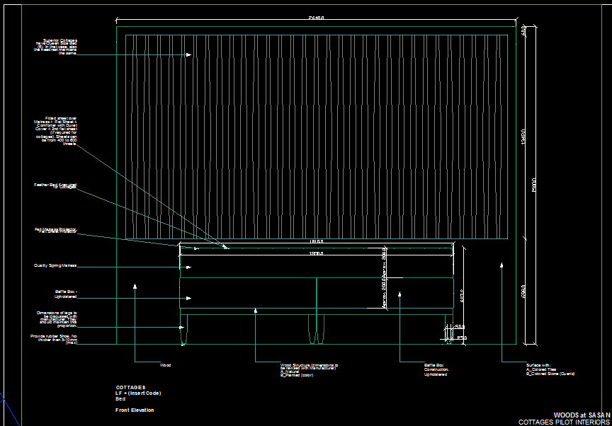 Double Bed DWG Design with 2D Layout for Interior Architecture