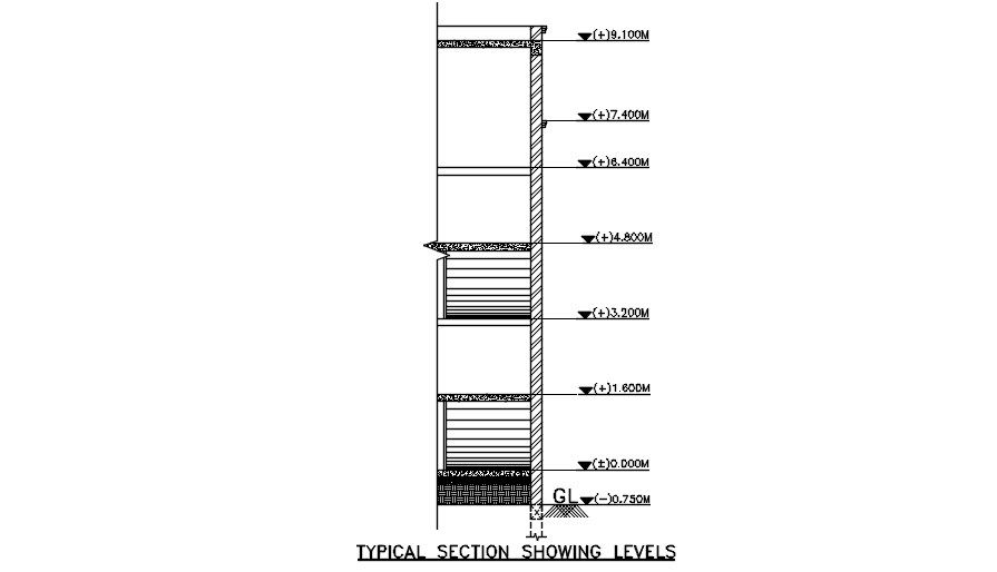 Typical section showing levels of a school building. Download AutoCAD DWG file.