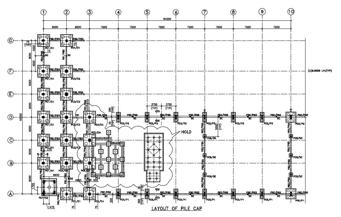 Enlarged detail of the pile cap cad drawing defined in this AutoCAD drawing file. foundation detail of the pile cap and steel bar detail given with dimensions and material specification detail is given in it. this can be used by architects and engineers. Download this 2d Autocad drawing file.