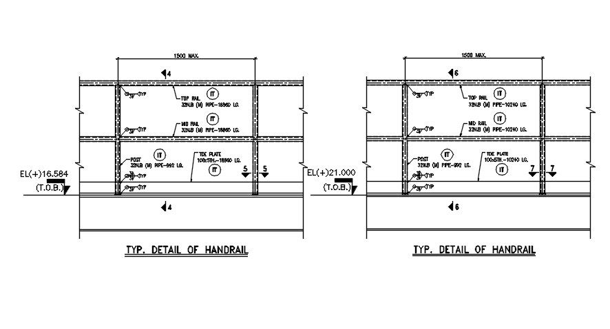 A typical detail of handrail is given in this 2D Autocad DWG drawing file. Download the Autocad DWG drawing file.