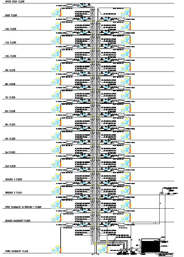∅6" FIRE RISER FOR SPRINKLER , ∅6" FIRE RISER FOR F.H.C, ∅2" DRAIN RISER, GROUND TO 12 TH FLOOR DETAIL wITH ROOF FLOOR.