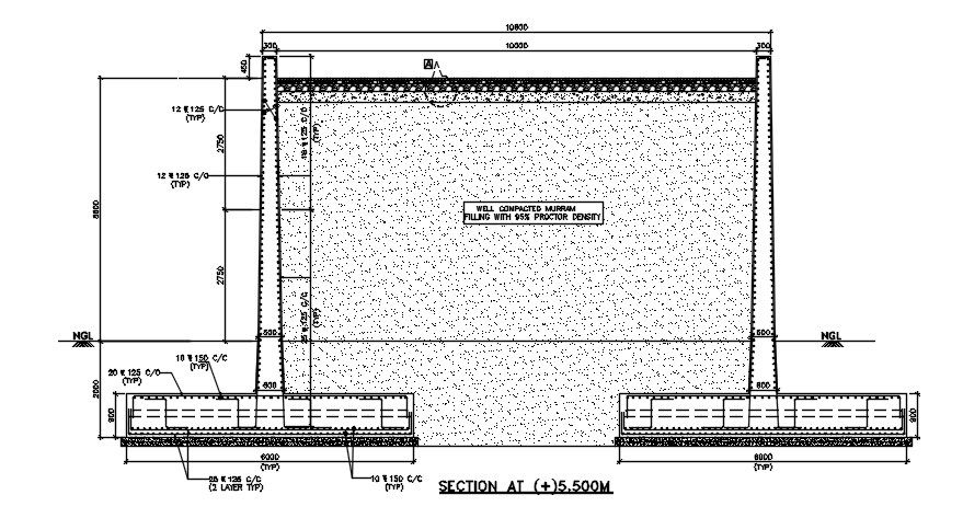 Industrial plant ramp section detail is given in this 2D AutoCAD DWG drawing file. Well compacted murram filling with 95% proctor density is provided. Bar details and spacing, length and breadth is specified in this drawing file. Thank you for downloading the AutoCAD 2D DWG drawing file and other CAD program files from our website.