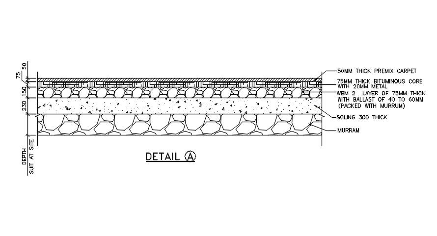 Detail of industrial plant ramp is given in this 2D AutoCAD DWG drawing file. Well compacted murram filling with 95% proctor density is provided. 50mm thickness of premix concrete is provided. 75mm thickness of bitumen core is provided with 20mm metal. WBM 2 layer of 75mm thick with blast of 40 to 60mm packed with murram is provided. Thank you for downloading the AutoCAD 2D DWG drawing file and other CAD program files from our website.