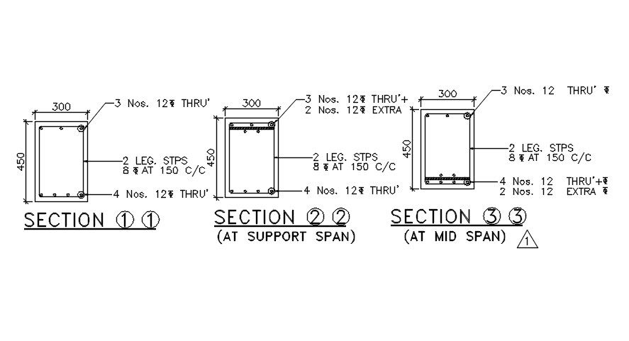 Typical Reinforcement detail of a beam. Download AutoCAD DWG file.