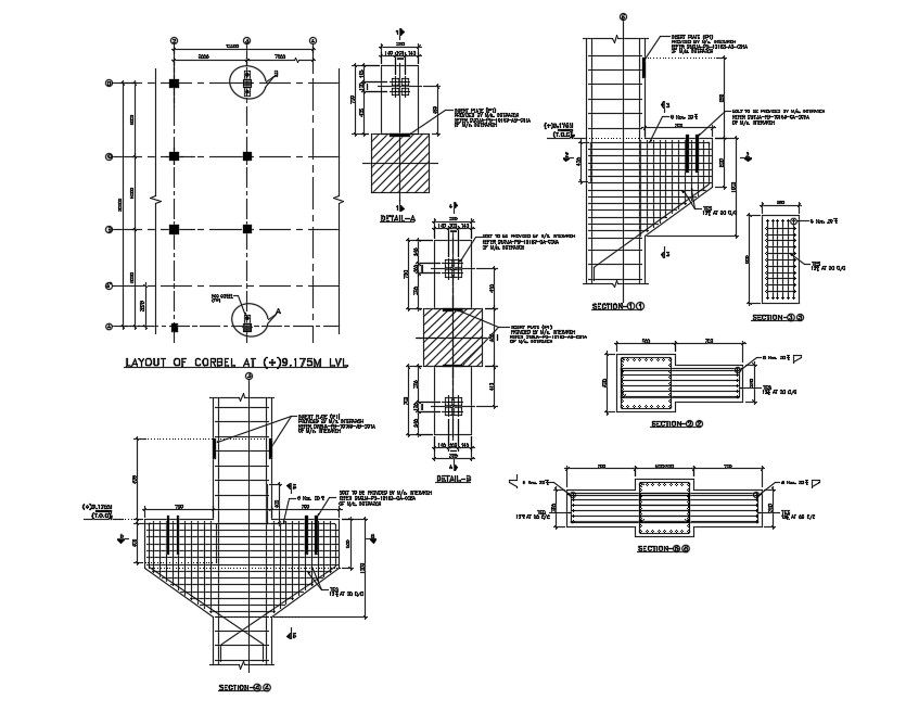 The layout of the corbel detail drawing separated in this AutoCAD file.Download this 2d AutoCAD drawing file.