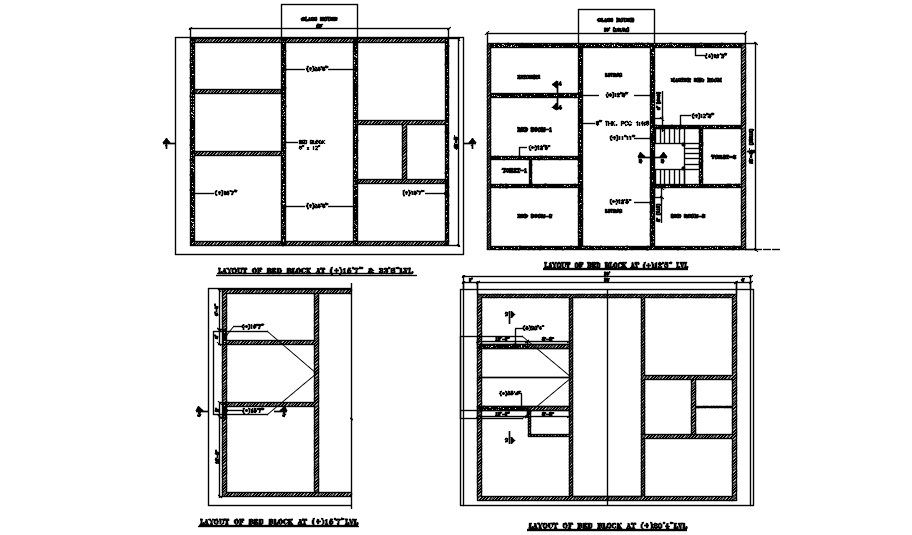 Layout of Bed block of a residential building. Download AutoCAD DWG file.
