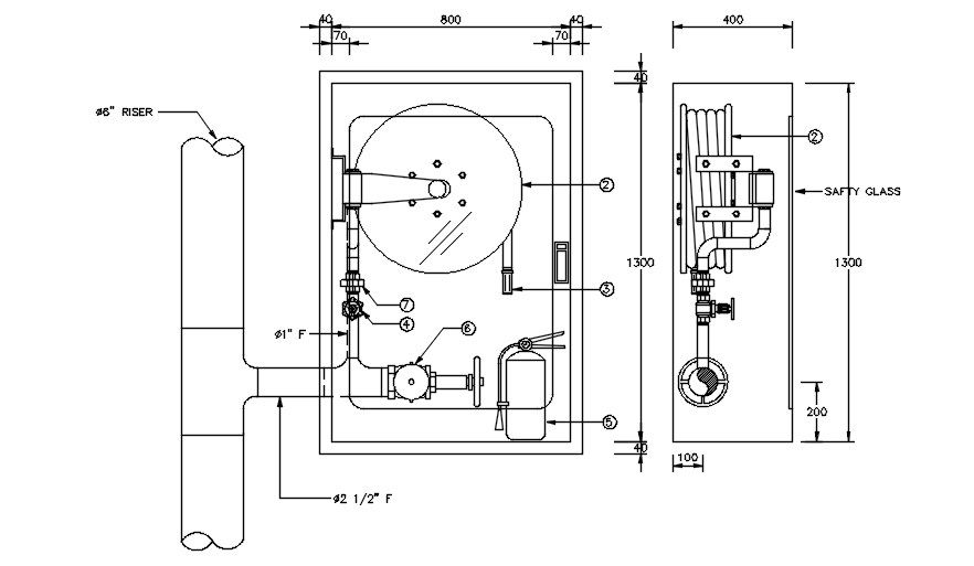 the AutoCAD drawing of airvent pipe line instillation section drawing that shows side and front view with glass safety. the air enters a system during the draining and filling of the lines. Any time liquid is removed from a piping system. Thank you for downloading the AutoCAD file and other CAD program from our website.