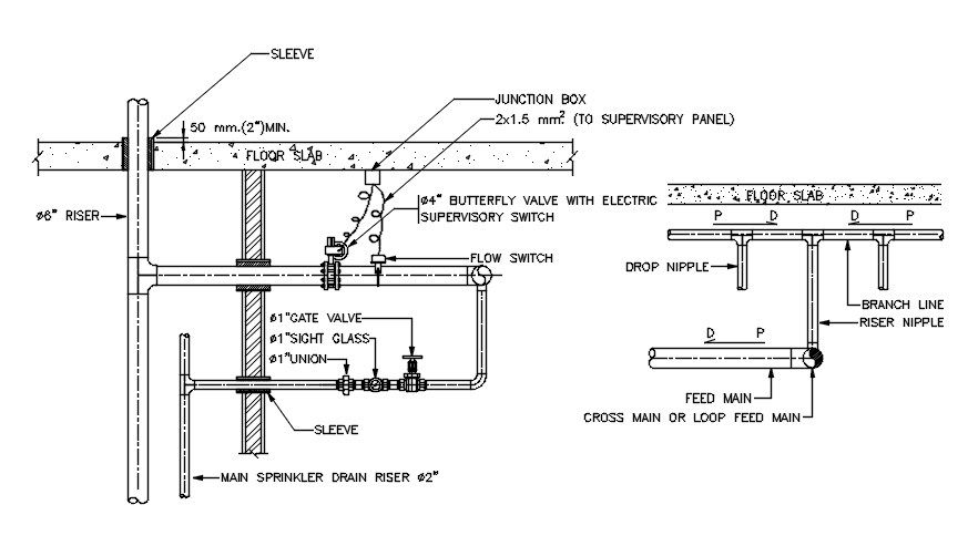 The Electrical power generation through butterfly valve with electric supervisory flow switch with has gate valve, sight glass and union branch line. the cross main or loop feed main and main sprinkler drain riser detail. Thank you for downloading the AutoCAD file and other CAD program from our website.