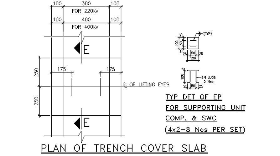 Plan of trench cover slab detail specified in this AutoCAD drawing file. Download this 2d Autocad drawing file.