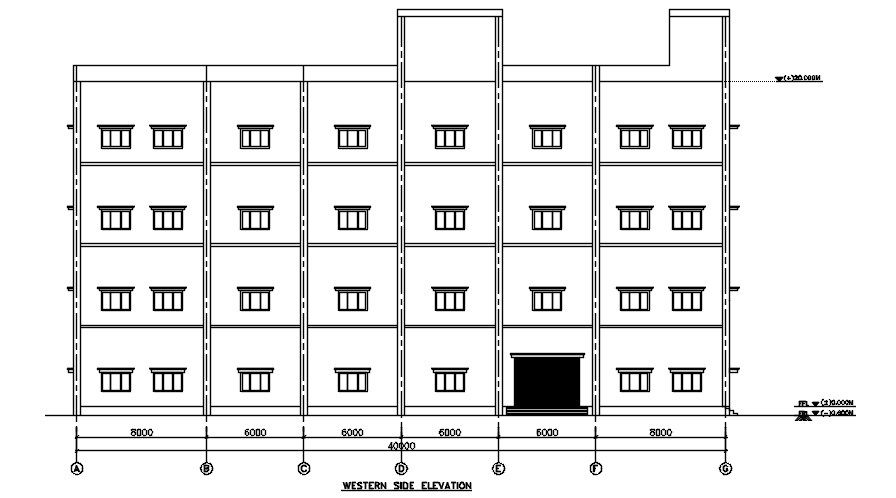 Side elevation detail of the apartment provided in this Autocad drawing file. this file consists of the first-floor plan, second-floor plan, terrace plan detail given with dimensions, and material specification given in this file. this can be used by architects and engineers. Download this 2d Autocad drawing file.