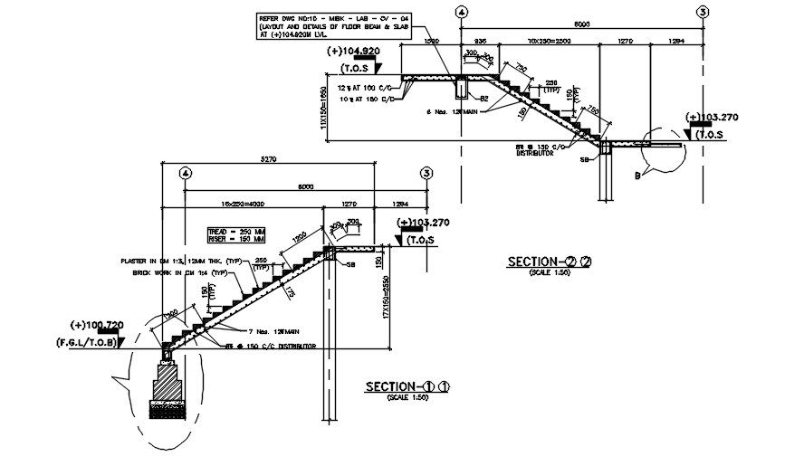 The staircase section detail drawing specified in this AutoCAD drawing file. Download this 2d Autocad drawing file.