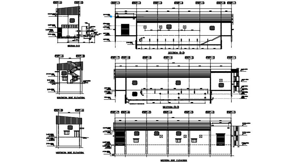 Western side elevation detail provided in this Autocad drawing file. Download this 2d Autocad drawing file.