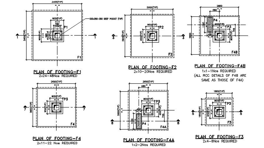 Indtut section view of footing details are given in this 2D Autocad WG drawing file. Circular and square footings are provided. Deep pocket is provided. Pedestals are provided. No of bars, size of bars, reinforcement details, length and breadth is mentioned in this model and layout. Other details are given in the drawing file. Thank you for downloading the 2D Autocad DWG drawing file and other CAD program files from our cadbull website.