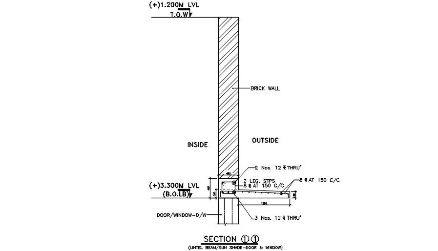 Section of lintel beam and sun shade, door & windows details are given in this 2D Autocad DWG drawing file. 460mm thickness of brick wall is mentioned in this drawing file. Other details are given in this drawing model and layout. Thank you for downloading the 2D Autocad DWG drawing file and other CAD program files from our cadbull website.