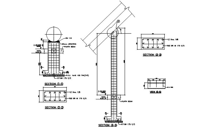 AutoCAD drawing of RCC construction column with plinth beam section view that shows reinforcement detail. this is provided to prevent the extension and distributes the load of the wall with propagation of cracks from the foundation. Thank you for downloading the AutoCAD file and other CAD program from our website.