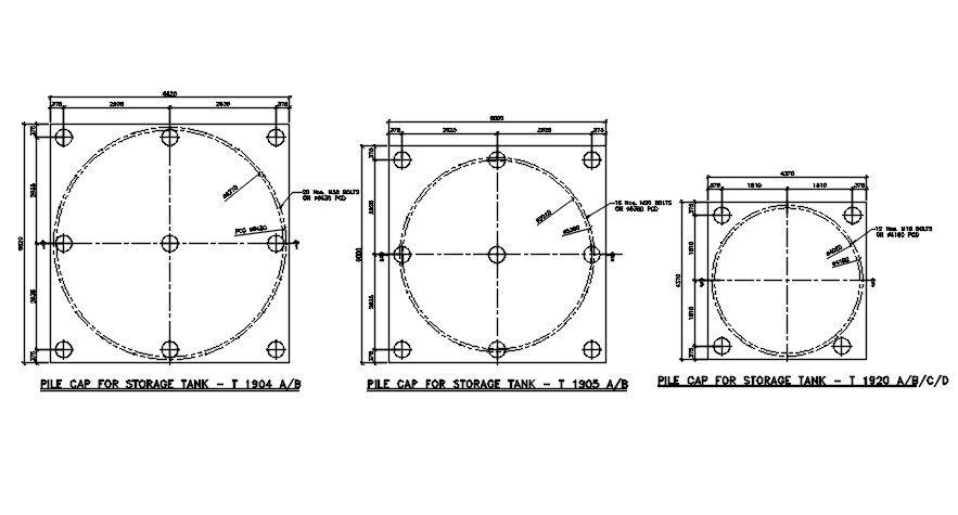 CETEX Pile cap for storage of MS tank foundation details are given in this 2D Autocad DWG drawing file. In this, there are three sizes of foundation details are given. Thank you for downloading the 2D Autocad DWG drawing file and other CAD program files from our cadbull website.