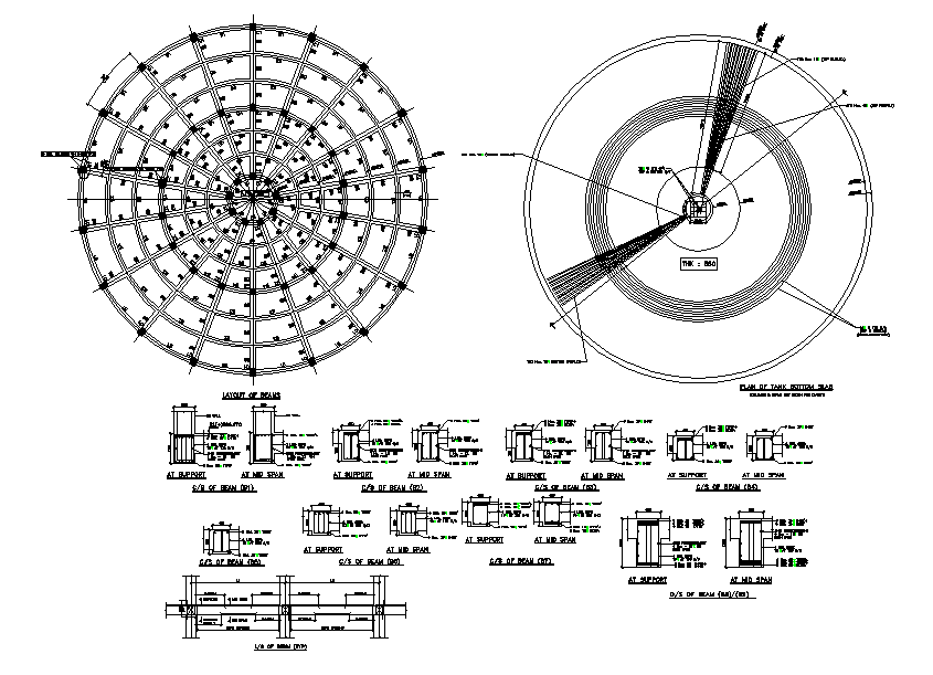 Tank bottom slab, layout of beam and section of Effluent treatment plant details are given in this 2D Autocad DWG drawing file. Download the 2D AutoCAD DWG drawing file.