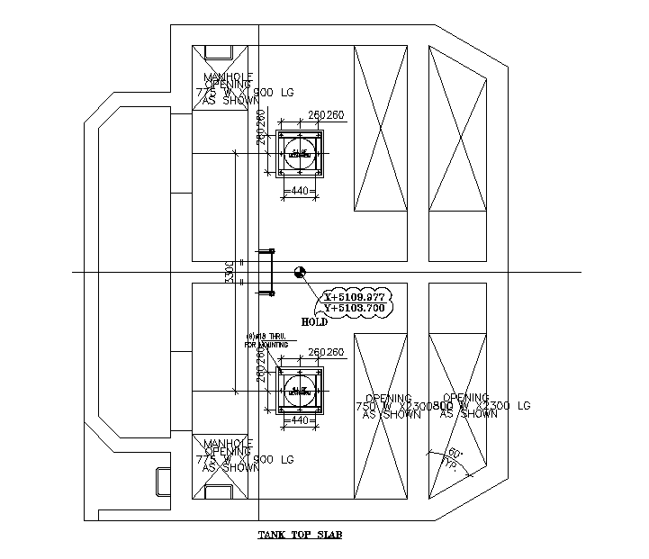 Plan of tank top slab details of the Effluent treatment plant details are given in this 2D Autocad DWG drawing file. Opening and manhole opening details are given in this drawing file. Measurements are given clearly in this drawing file. Thank you for downloading the AutoCAD file and other CAD program files from our website.