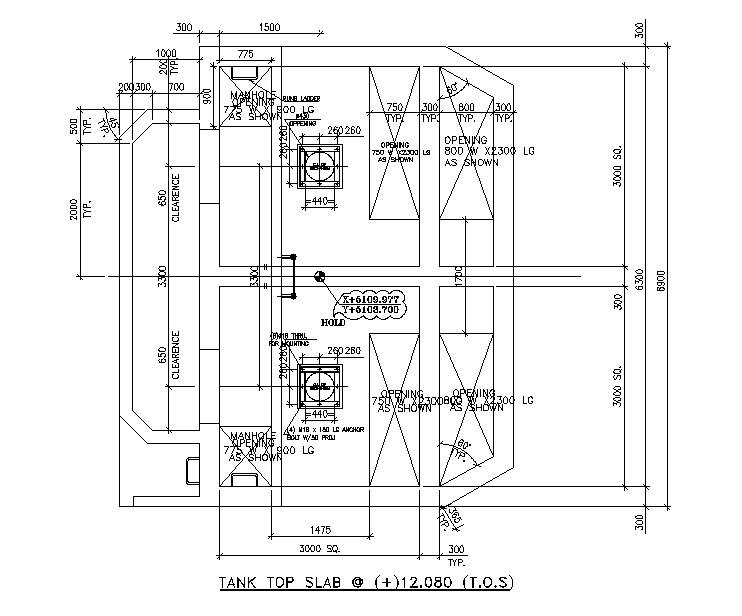 Layout of tank top slab details of the Effluent treatment plant details are given in this 2D Autocad DWG drawing file. Opening and manhole opening details are given in this drawing file. Measurements are given clearly in this drawing file. Thank you for downloading the AutoCAD file and other CAD program files from our website.