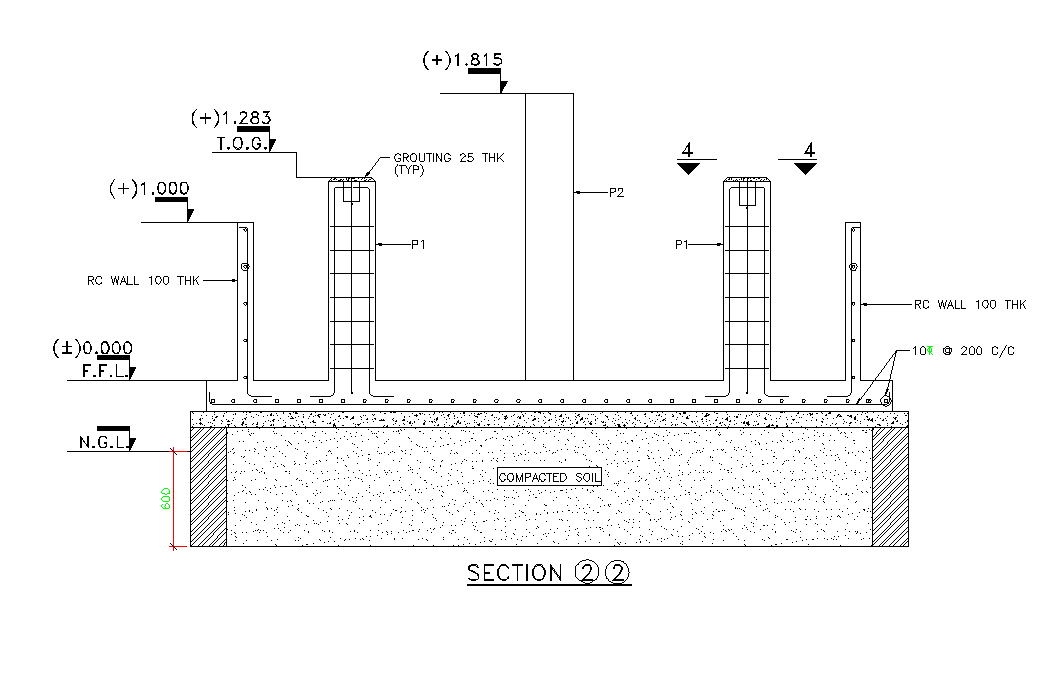 Fermentation cooling tower base details are given in this 2D Autocad DWG drawing file. Thickness of grouting is 25mm. RC wall thickness is 100mm. Compacted soils were done. Download the 2D Autocad DWG drawing file. Thank you for downloading the 2D Autocad file and other CAD program files from our website.