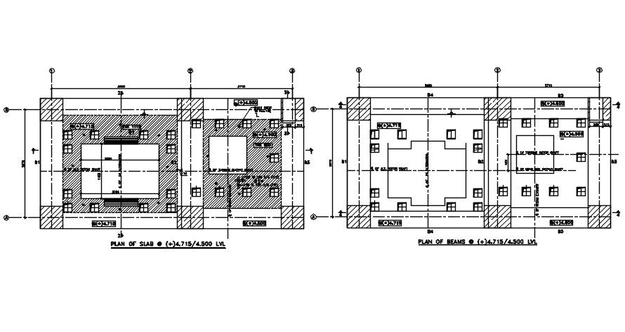 Plan of slab details drawing stated in this Autocad drawing file. this file consists of slab detail and beam details presented with dimensions and material specifications. This can be used by architects and engineers. Download this 2d AutoCAD drawing file.