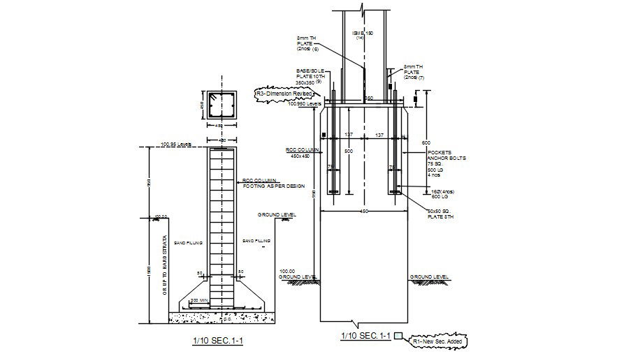 Reinforcement detail drawing defined in this AutoCAD drawing file. this file consists of a450 x 450 sizes of column detail for reinforcement given with dimensions and material specifications. this file can be used by architects engineers and engineers. Download this 2d AutoCAD drawing file.