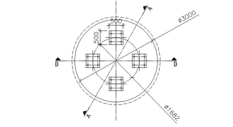 The reinforcement detail of the foundation is given in this Autocad drawing file. Download this 2d AutoCAD drawing file.