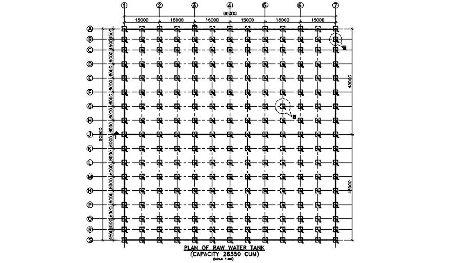 The raw water storage tank construction CAD drawing that shows RCC column with center line plan and dimension detail. this water tank storage capacity 28350 liter. Thank you for downloading the AutoCAD file and other CAD program from our website.